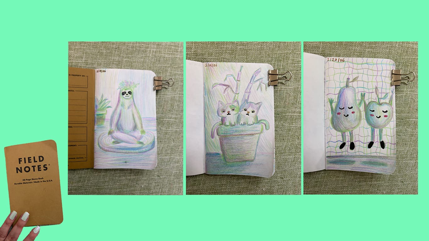 These drawings came from a place that doesn’t need direction, outcomes, or improvement. The part that reaches for color because it feels good in the hand. The part that remembers when drawing was just a way to express.