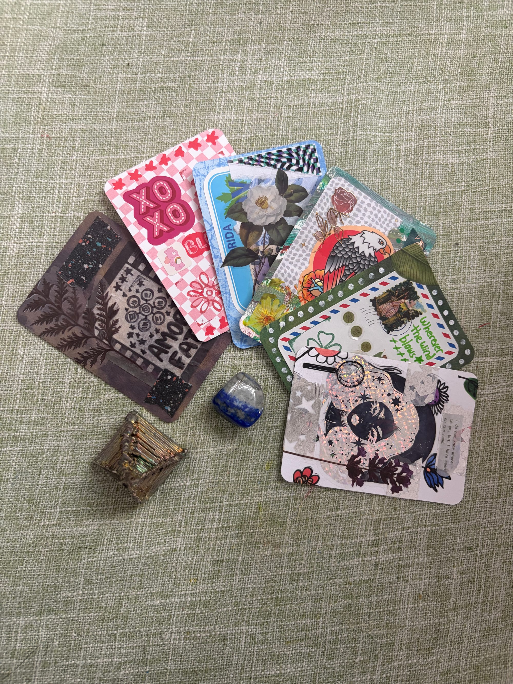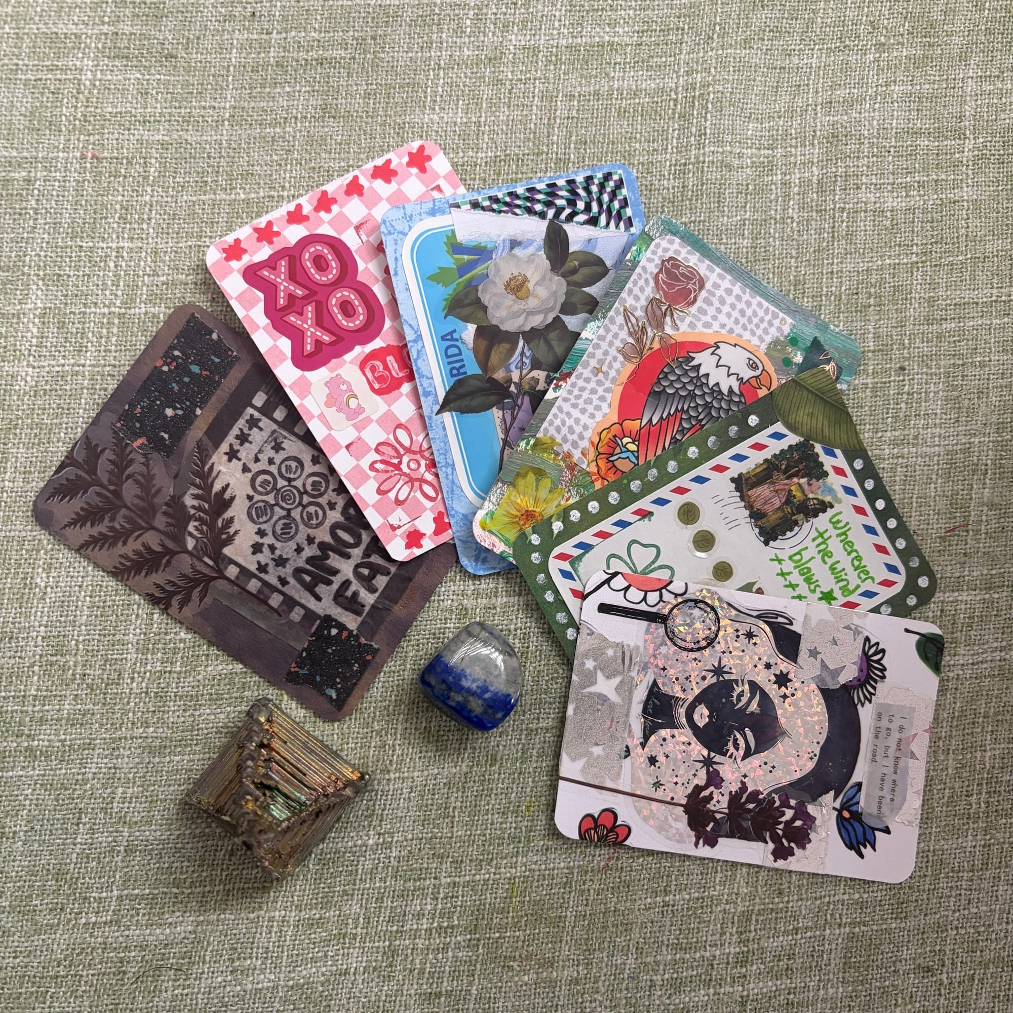 ATCs (Artist Trading Cards) are small-format art pieces, usually 2.5 x 3.5 inches that work beautifully for collage, intuitive art, and low-pressure creativity.
